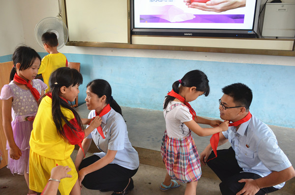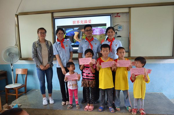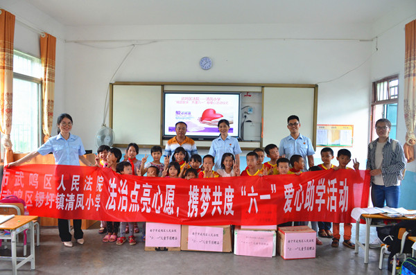 “我想要一个篮球”“我想打羽毛球”“我想买苹果吃” ……书包、篮球、苹果、羽毛球拍……这些普通平常的东西,却是一些贫困孩子不敢多想的心愿。为了庆祝六一儿童节,5月31日下午,我院党组成员、副院长谭芳兰、民一庭负责人黄成果、妇女儿童维权岗潘红玉法官一行代表我院工委和团支部来到我院扶贫挂点村武鸣区锣圩镇清凤村开展“法治点亮心愿,携梦共度六一”爱心助力活动。为清凤小学20名小朋友们送上慰问品,向5名困难儿童发放了慰问金,并把“微心愿”礼物带到了学校教室,亲手把礼物送给许下心愿的同学,用特殊的礼物和满满的爱心送去对孩子们的关怀。 活动中,谭芳兰副院长向孩子们询问了日常生活及学习情况,鼓励他们要勇于面对暂时的困难,树立良好的生活信心,保持积极向上的学习态度,用知识改变命运,将来成为国家的栋梁之材。希望老师们继续尽心尽责,做学生成长成才的引路人。清凤小学的孩子们为谭芳兰副院长一行佩戴上鲜艳的红领巾,学生代表作了发言,表示一定会努力学习,回报社会,决不辜负叔叔阿姨们的期望。随后,谭芳兰一行向孩子们发放了蛋糕、牛奶、水果等食品,与孩子们亲密交谈。在一句句贴心的话语中,让孩子们对未来充满憧憬。孩子们用纯真心向法官叔叔阿姨们说出了长大后的梦想,更多的小朋友表示希望成大后梦想也能成为一名法官,这让谭芳兰副院长欣慰不已,她表示,法院将一如既往地开展对贫困儿童的关爱和帮扶活动,让每一个孩子在充满爱心的集体内幸福、快乐地成长。