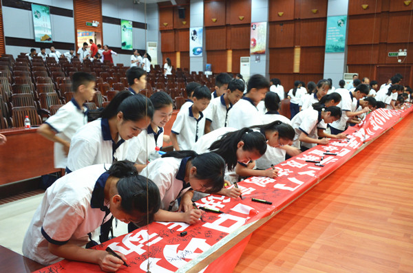 活动最后,全体师生及活动参与人员还共同在活动横幅上签上了自己的名字,庄重承诺珍爱生命,拒绝毒品。